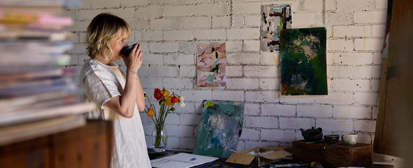 Veda Laferne Studios is the collective home of the creative practice of Jane (Thompson Art) and the poetic voice of Veda Laferne. Jane is an abstract painter who discovered a deepening call in her practice within the poetic language and ideas of Veda Laferne. Veda (a courageous muse of the imagination) emerged organically alongside Jane’s daily writing practice over several years and it was here Jane realised a more expansive field of creation was possible for herself.